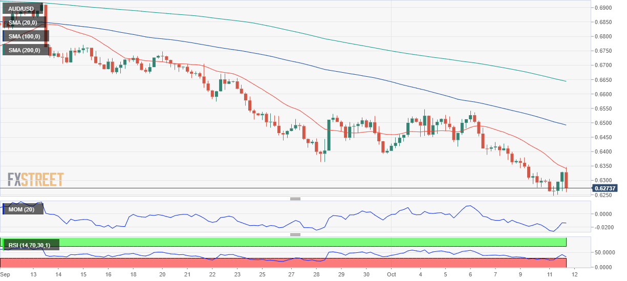 澳元/美元连续第四天下跌,创两年新低。日线图上的技术数据有利于进一步下跌,因为该货币对继续在坚定的看跌移动均线下方交易,20 SMA 加速走低,低于较长时间的均线。与此同时,技术指标在超卖附近盘整,但没有出现停止下跌的迹象。