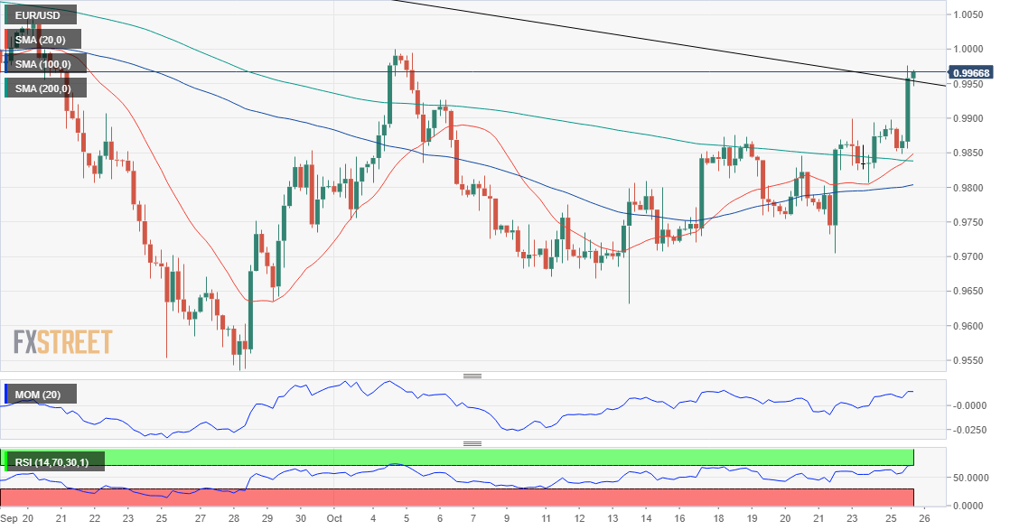 欧元兑美元周二飙升至 0.9976,创下三周新高,原因是美国国债收益率下降以及美国数据不温不火打压了美元 (USD)。欧盟数据令人鼓舞,为遭受重创的欧洲货币 (EUR) 提供了急需的提振。