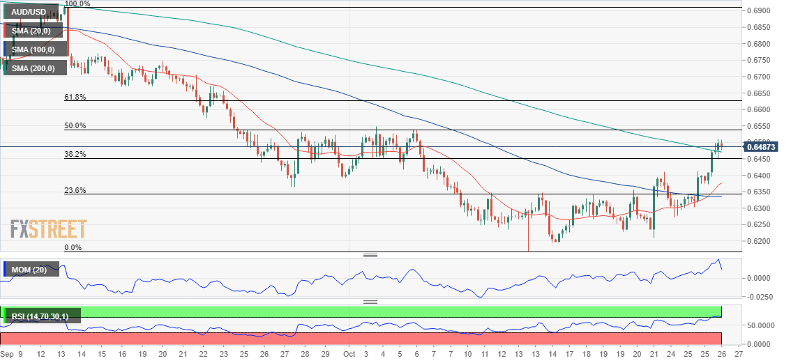 澳元/美元已反弹至关键斐波那契水平上方,即 0.6915/0.6169 跌幅的 38.2% 回撤位 0.6450,这是目前的直接支撑位。该货币对在日线图上转为看涨,飙升至目前无方向的 20 SMA 上方,因为技术指标在正水平内坚定走高,自去年 8 月以来首次高于中线。与此同时,长期移动平均线继续向南移动,远高于当前水平。