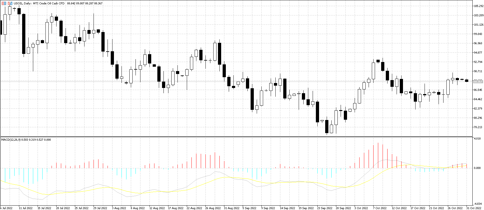 美油隔夜止涨,盘中下跌后有所回升,收阴线,收盘88.729美元/桶;日线图上,MACD双线0轴线上方缓慢向上运行,阳柱势能平稳小幅放量。