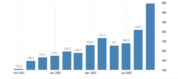 不过这个情况可能象征,欧洲能源供给可能已经舒缓,虽说意大利仍有极度高幅度变动,但其他国家的状况都开始慢慢缓解了,随着9月下旬天然气开始舒缓,现在价格大约相比9月初价格已跌将近腰斩,但通膨的滞后性也如同美国6月原油一般,大概也要等到降价后的2个月左右,才会开始缓降下来,因此可能会有「便宜的天然气还在海上」这种说法,但也如此,现在天然气可能就会是最后烟火,下个月需关注是否有真实下降。