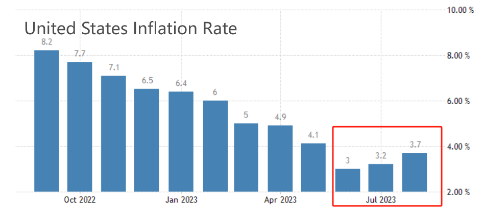 本周四,美国劳工部将公布9月未季调CPI年率,前值为3.7%,市场预期将降低0.1个百分点至3.6%。自今年6月份开始,美国的通胀率就已经处于4%以下,相比历史峰值已经“打对折”。高通胀问题已经出现实质性缓解,表面看继续加息的必要性已经不高。然而,“通胀率下降”和“通胀率达到2%”不同,即便市场预期未来将达到2%的目标,但只要现阶段通胀率仍高于2%,美联储选择加息就不能算超预期。